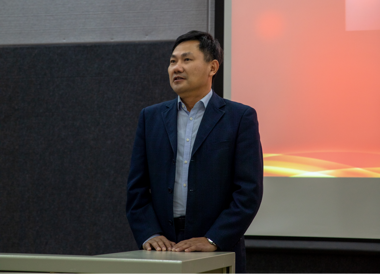 教师代表,国家优秀青年科学基金项目获得者王枫教授发言。他首先代表学院全体教师欢迎各位新同学的到来。王枫从自己读研期间的感受出发,以“新鲜”、“焦躁”、“兴奋”三个关键词入手勉励同学们要惜时、自强、博学,充分利用在校学习的黄金阶段,既要脚踏实地学习,也要不忘仰望星空,保持对未来科学领域的热情与执著。