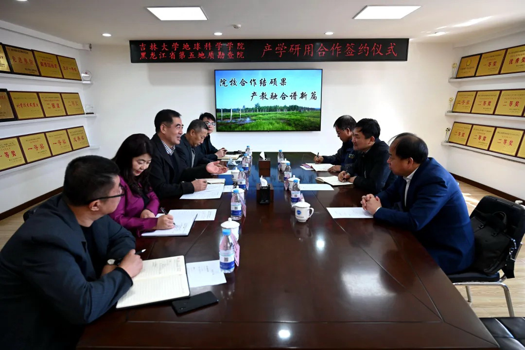 的办学历史、组织机构、办学特色和科研方向等情况,并强调共建产学研基地,有助于校企合作、产学共赢、优势互补,双方通过集成优势资源,提升创新能力和技术水平,他希望通过此次合作可以为黑龙江省第五地质勘查院的未来发展提供人才储备、技术攻关等多方面的支持,让签约合作走深走实。