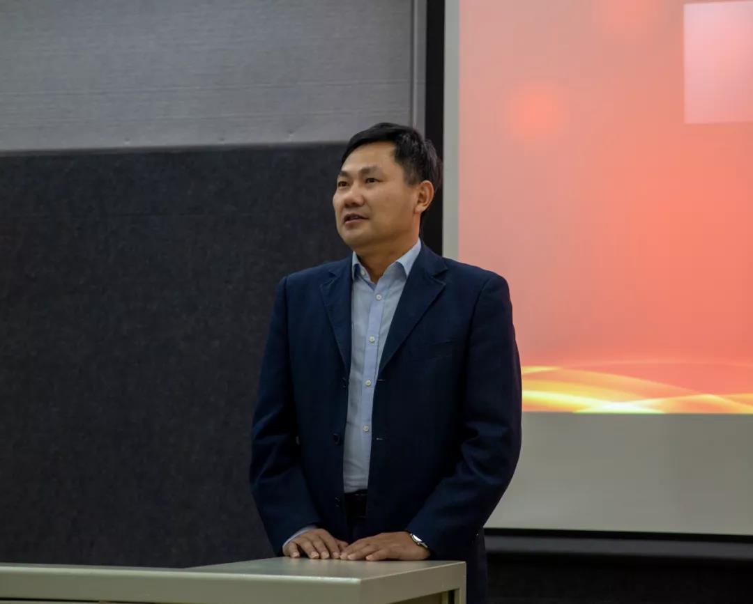 教师代表,国家优秀青年科学基金项目获得者王枫教授发言。他首先代表学院全体教师欢迎各位新同学的到来。王枫从自己读研期间的感受出发,以“新鲜”、“焦躁”、“兴奋”三个关键词入手勉励同学们要惜时、自强、博学,充分利用在校学习的黄金阶段,既要脚踏实地学习,也要不忘仰望星空,保持对未来科学领域的热情与执著。