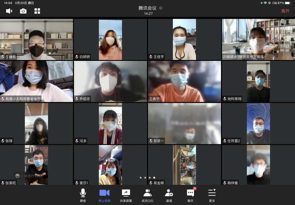 研究生干部心理健康教育主题线上会议结束后,各年级的班级干部积极响应学院号召,在当日晚分别召集各班级同学们进行“疫情期间的心灵沟通”、“线上见面会”等主题班会。班会上,同学们为这特殊时期的“久别重逢”而感动,大家相互分享了自己的日常生活,讨论了这段时间在学术上遇到的困难和收获的心得,也交流了许多情绪上的困惑,大家相互加油鼓劲,相互加油,彼此约定在疫情结束的那天再次见面,相信我们一定会战胜疫情。