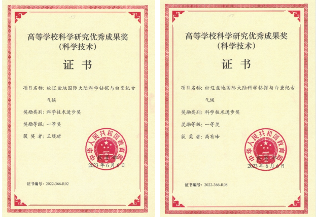 王璞珺教授团队参加的“松辽盆地国际大陆科学钻探与白垩纪古气候”项目获得一等奖,其中科探井总地质师王璞珺教授和项目骨干高有峰副教授在22名获奖人当中分别排在第二位和第八位。