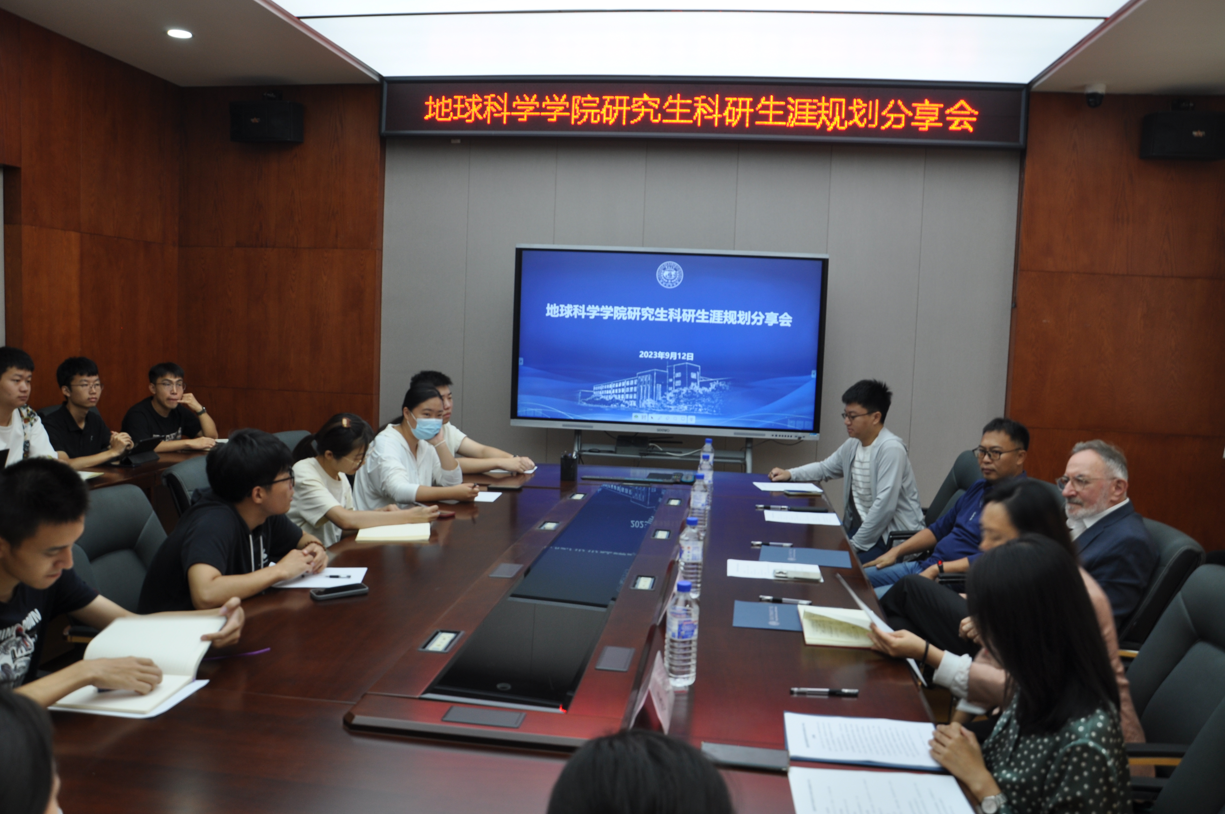 外聘杰出教授、恐龙演化研究中心名誉主任罗伯特·赖兹教授在鸽子楼109-2会议室开展研究生科研生涯规划分享会。活动由党委副书记马旭主持,学院副院长柳蓉、恐龙演化研究中心副主任陈军、古生物与地层学教研室主任李晓波参加此次活动。