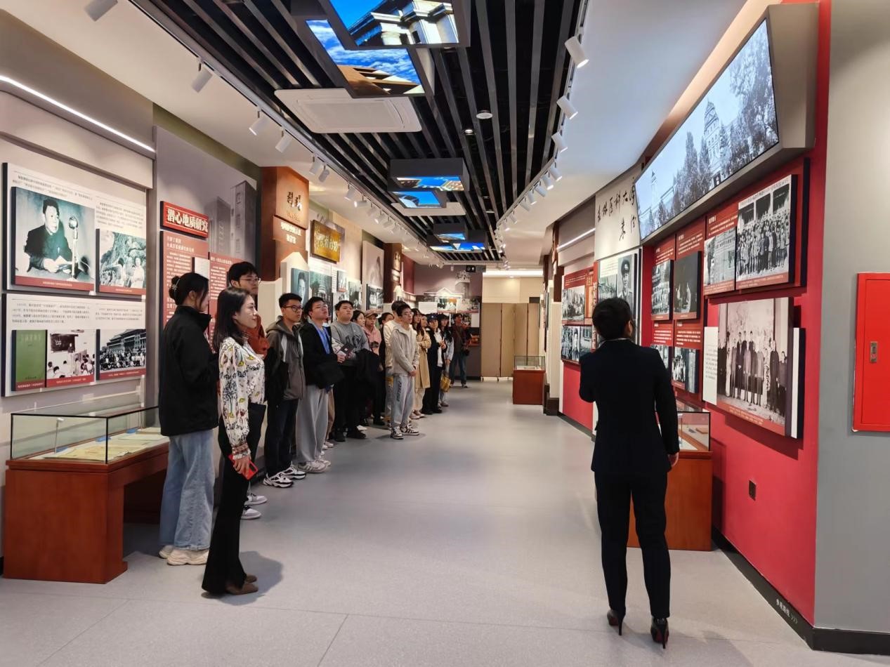 活动中,在讲解员的带领下,同学们依次参观了序厅、“创校先驱”展区和“功昭校史”展区。在“创校先驱”展区,讲解员向同学们先后介绍了学校的第一代领导者、六校的首任校长林枫、饶斌、江一真、李四光、陈先舟、任抟九的生平事迹和卓越贡献。“我是炎黄子孙,理所当然地要把学到的知识全部奉献给我亲爱的祖国”,李四光院士留学归国前说的这句话令同学们深受感触。在“功昭校史”展区,记录了吕振羽、匡亚明、唐敖庆等12位在人才培养、科学研究、服务经济社会发展、文化传承创新方面取得的令人瞩目的辉煌业绩。最后,同学们自由参观了“滋兰树惠”展区,该展区分为7个展室对余瑞璜、朱光亚、王湘浩等46位原六校建校早期的学科奠基人和为学校的学科建设和人才培养作出重大贡献的院士及资深教授的生平进行了集中展示,深刻领悟这些奠基人、开拓者不畏艰辛,甘于奉献,追求真理,敢为人先的精神。