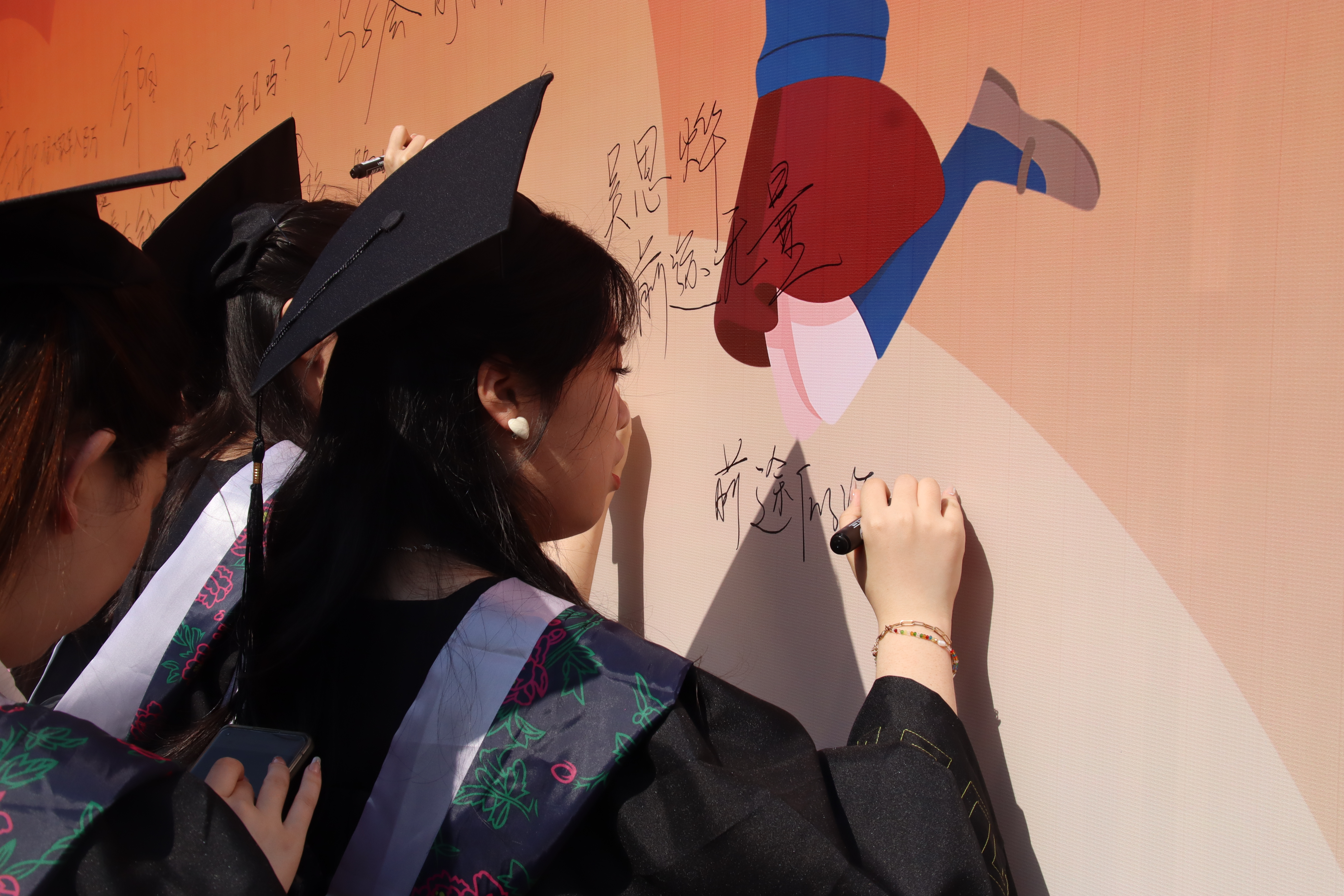 在离别的拥抱之后,同学们将如同蒲公英般分散至各方。尽管宇宙无垠,生活无限,同学们仍需以“人比山高、脚比路长”的精神赶赴下一场山海,谱写新一篇华章。毕业不是终点,而是一个崭新的起点。在吉大这片热土上,同学们收获了知识、友情和成长,或许未来的路途充满荆棘与挑战,但只要心中有信念,脚下有力量,便能跨越山海,抵达远方。
