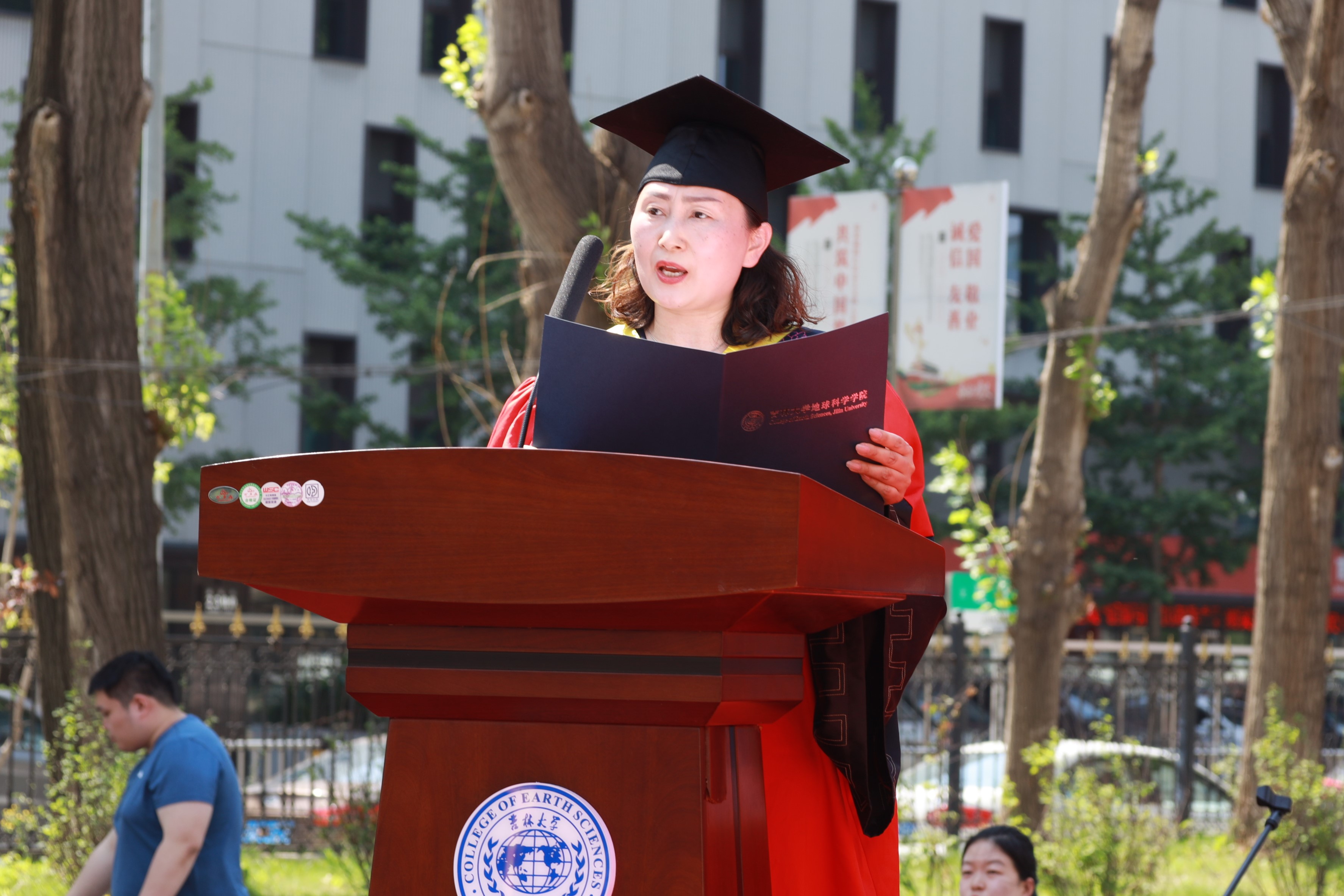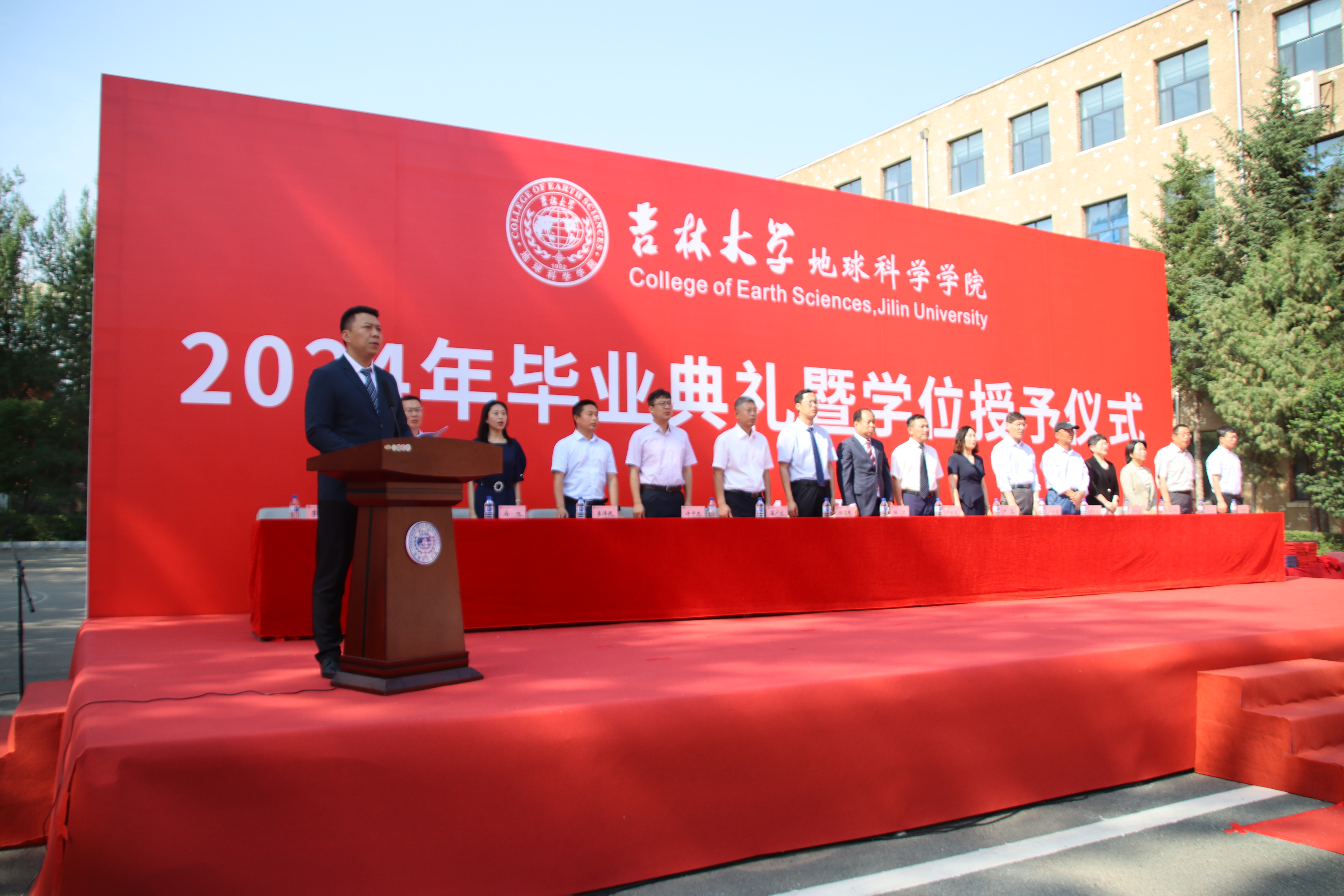 研究生代表赵伍涛回顾了三年研究生生涯中的难忘时刻,对学院提供的资源和平台,以及老师们的辛勤耕耘和严谨教导表示诚挚的感谢。他表示,地球科学不仅提升了他的专业素养,更赋予了他深刻的生活哲学。在探索自然的过程中,他也在不断地认识自我,实现自身的成长。他将继续秉承吉大人的精神及地学传统,怀抱梦想,勇敢前行,书写辉煌的篇章。
