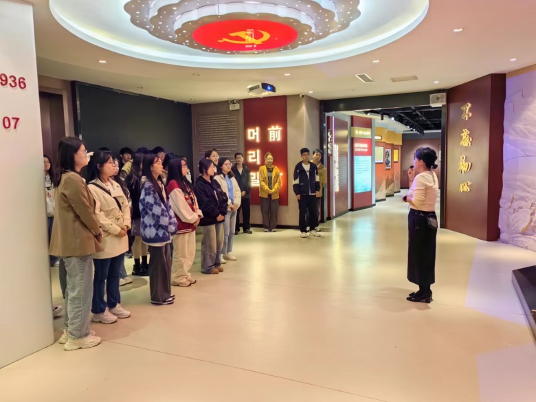 在现场教学部分,同学们先后参观了和龙市光东村、图们市口岸广场、图们市日光山、中共东满特委红色展览馆等地。在和龙市光东村,同学们沿着习近平总书记的足迹步入水稻田园,实景体验光东村文旅产业的发展之路,深入了解光东村在党的领导下,坚持新发展理念,走生态农业之路,最终实现乡村振兴、兴边富民的伟大故事。在图们市口岸广场,党校老师讲述了图们口岸的历史以及在抗美援朝中发挥的重要作用,通过对朝鲜族士兵权寿福事迹的讲述,希望同学们牢记抗美援朝精神,增强民族团结意识。在图们市日光山,党校老师对朝鲜的经济以及中朝关系进行了简单介绍,强调了筑牢中华民族共同体意识、坚持高水平改革开放的重要性。在中共东满特委红色陈列馆,同学们近距离接触并感受东北抗联14年的峥嵘岁月,对抗联先烈的英雄事迹有了深刻的体会。在东满特委复建地——初心讲堂,党校老师对东北抗联的历史进行了总结,希望同学们铭记抗联历史,坚定共产主义信仰,坚守为民初心,不负时代使命。