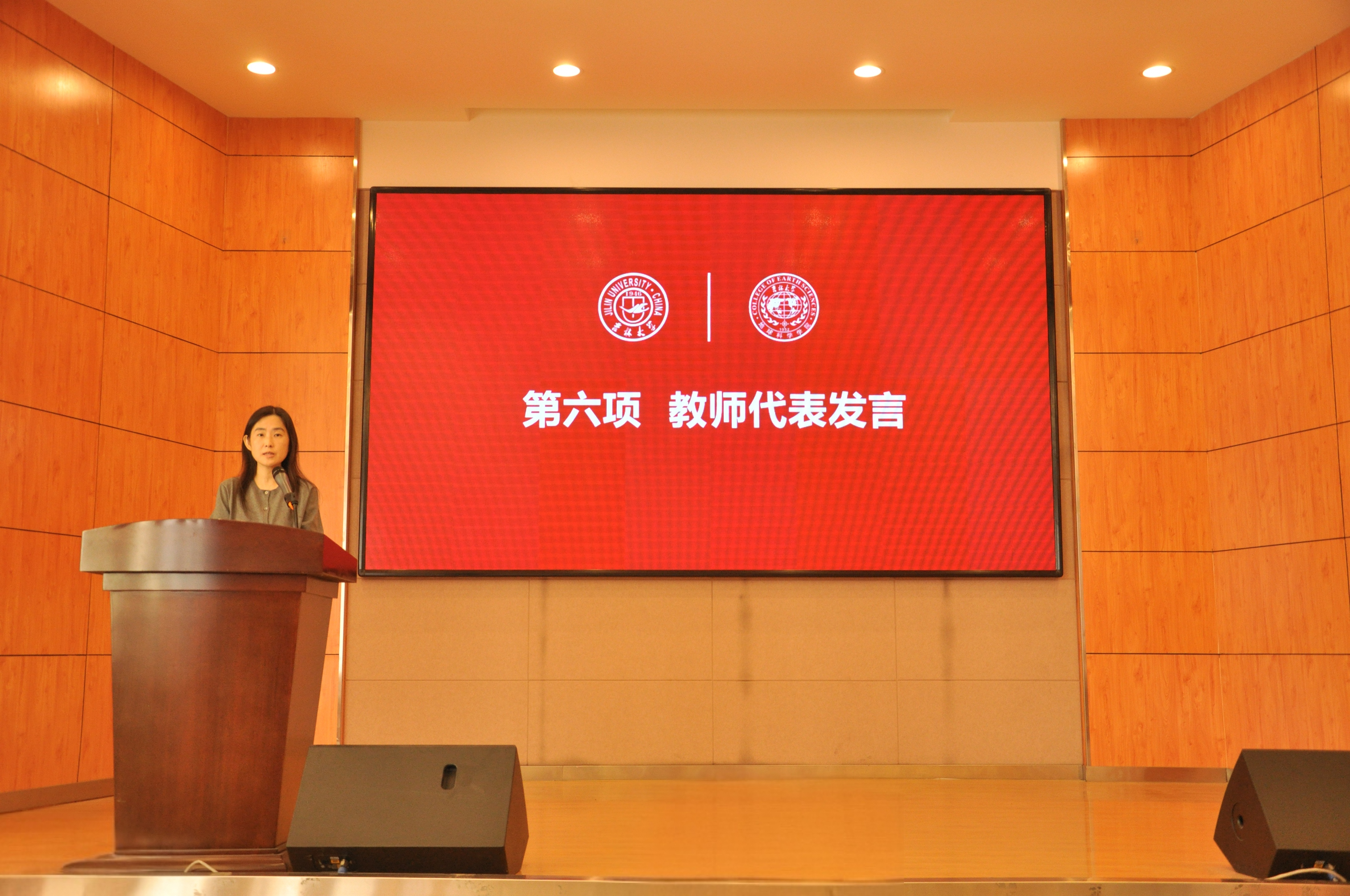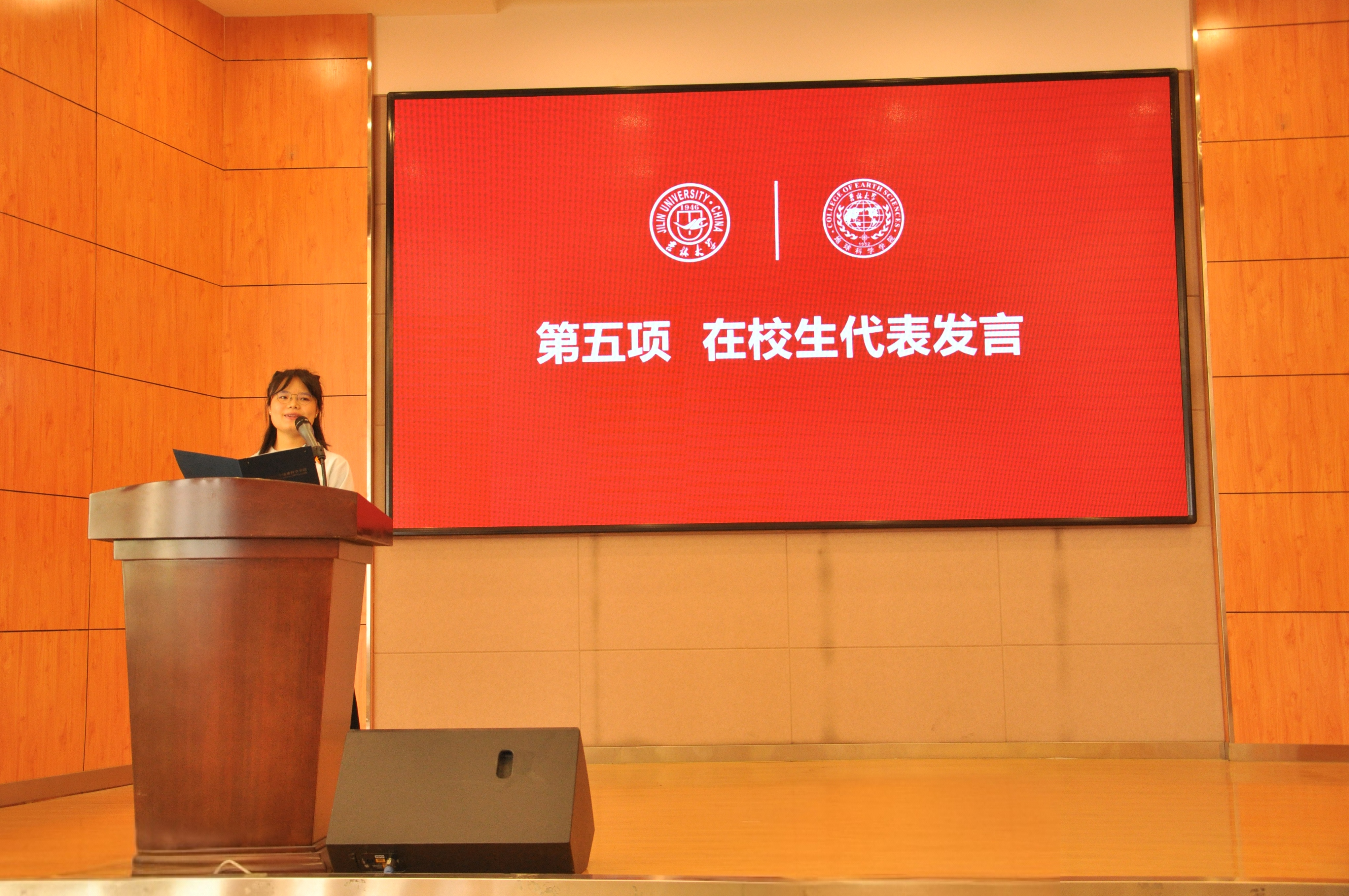 随后,2024级地质学专业硕士研究生张雨禾和2021级土地资源管理专业硕士研究生陈莉媛分别代表新生和在校生发言。他们鼓励同学们要继承和发扬地科精神,不畏艰难,勇于探索,以实际行动为地质科学的发展贡献力量。