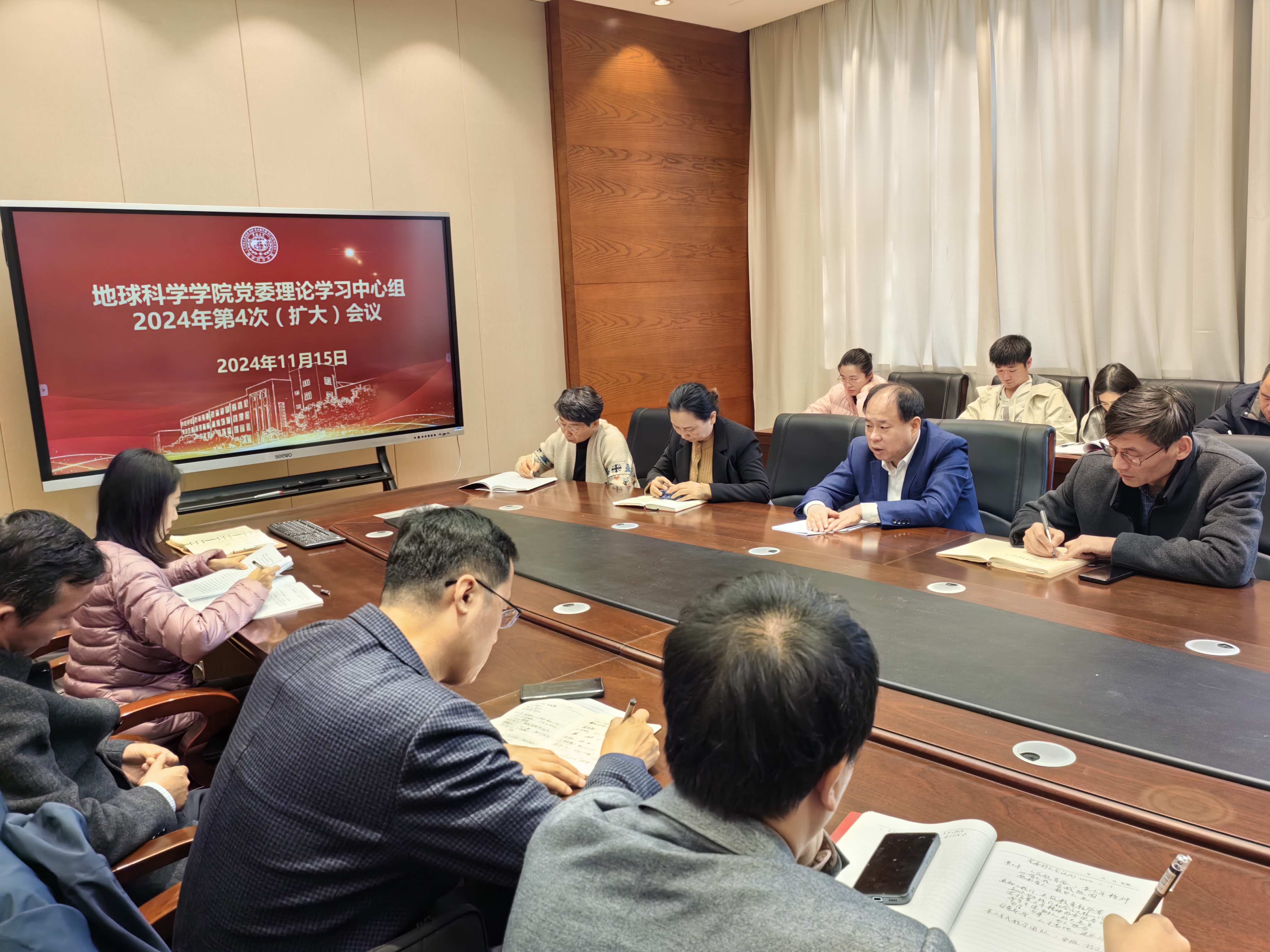 党委理论学习中心组召开扩大会议专题学习“人民教育家”黄大年精神,学院党委委员、领导班子成员、教工党支部书记、机关科室主任参会,会议由党委书记杨洲主持。