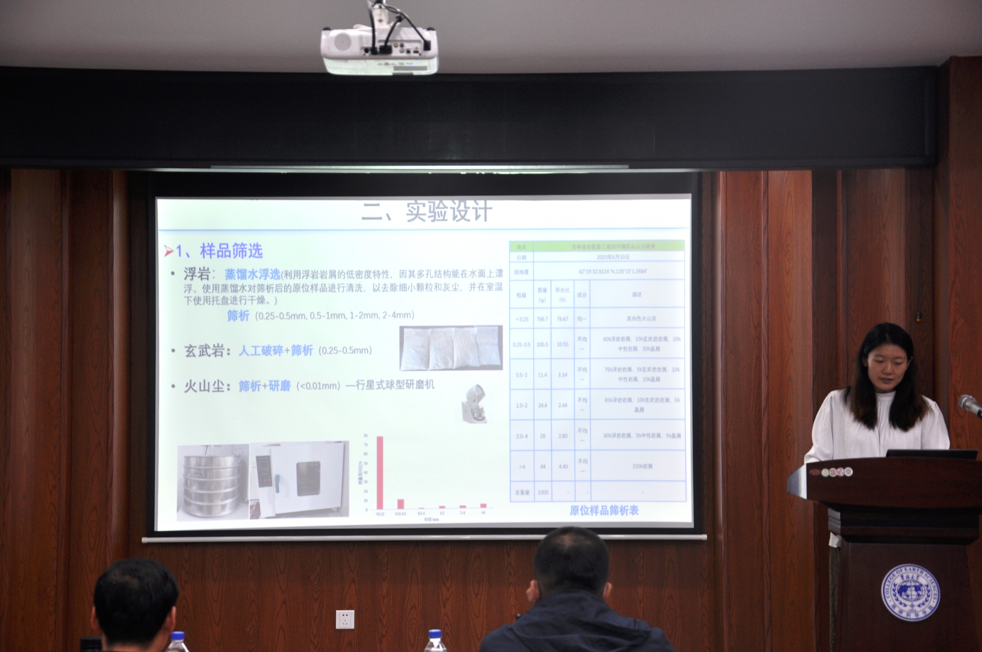 活动上,冯永博同学横向对比全球51个富油气超级盆地勘探进展与构造演化并阐述规律特征,张亚东同学对全球51个富油气超级盆地烃源岩进行横向对比并阐释规律,付琦同学则对全球51个富油气超级盆地盖层展开横向对比并解析规律特征;董自强同学分析查干花次凹火石岭组火山碎屑岩储层的岩性岩相、储集空间类型及构造环境,建立“构造-风化-岩相”三元耦合控储模式;李媛媛同学运用高压压汞和核磁共振技术联合表征储层全尺度孔隙结构特征,研究孔喉分形特征及分形维数与储层物性、孔喉结构参数的关系;张莹同学探讨松辽盆地火山岩相模式及其储层意义,纪泽雨同学研究浮岩和火山尘对火山碎屑堆积物机械压实的影响;李馨瑜同学系统综述玄武岩中CO₂矿化的基本机理、岩性与矿物学差异对矿化效率的影响及不同类型玄武岩的封存特征对比,为工程应用提供理论与实践参考;于雨桐同学研究东海盆地西湖凹陷火成岩储层特征,明确优质储层特点、控制因素及成因并建立储层分布模式;黄昱皓同学探讨上沧-华蓥山-沙腔地区峨眉山玄武岩主微量分析及构造环境推断,马梦南同学结合钻井地球化学特征与岩心精细观察建立峨眉山玄武岩组地层序列和形成发育模式。