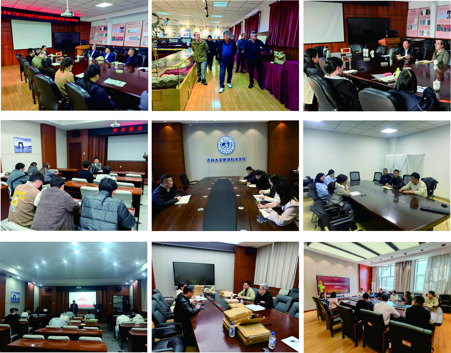 党委书记衣长涛与院长单玄龙、行政副院长苗广文深入古生物学与地层学研究中心,就古生物学与地层学学科发展、师资队伍建设、办公用房合理利用、防火安全等问题进行了调研;院长单玄龙深入《世界地质》期刊编辑部,就期刊存在的问题、未来发展方向以及编委换届问题与编辑部成员进行了深入交流;党委副书记吴新明组织召开研究生班干部座谈会,就研究生思想动态、学习科研适应、日常管理服务、班团组织建设等方面听取意见建议;党委副书记司镇通深入本科学生宿舍、课堂,就思政教育、学风建设、心理健康教育、就业指导等重点工作开展调研,听取了辅导员、学生代表的意见和建议;副院长李伟民深入学院科研实验室,就实验室条件建设、大型仪器设备共享考核、CMA认证相关事宜进行调研;副院长许中杰深入硕士学生党支部,就研究生党支部学习教育开展情况进行调研,同时听取学生的意见和建议;副院长钱烨与各系主任进行了座谈,就去年试卷批改过程中存在的具体问题进行了交流,并对今年考务工作提出明确要求;副院长王枫深入地质系教师党支部,就教工党支部学习教育开展情况进行调研,同时听取教师对学院的意见和建议;行政副院长苗广文与资产管理处相关领导共同就鸽子楼教室及周边公用房情况进行了调研;副馆长兼副院长高全胜就地质博物馆馆藏标本登记情况进行了调研。