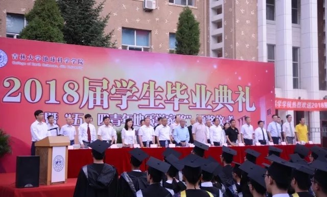 典礼仪式从一段美好的回忆视频开始,视频中出现了一张张熟悉的面容,是可亲可敬的老师,是朝夕相处的同学,是每天打招呼的宿管阿姨或门卫大叔,引起了在场所有人的共鸣。随后,18级毕业生深情的为大家诵读了诗朗诵《给我一个拥抱》,求学生涯虽短暂,但回忆满满,稚嫩18岁时收到吉大地科院的录取通知书,疲惫但有意义的军训,第一次进入大学的课堂学习,第一次在图书馆刷夜应考,第一次看到鸽子楼的柔和和岁月痕迹,不会喝酒的醉了,不常哭的流泪了,大学时光总是那么短暂却又是那么的独一无二。