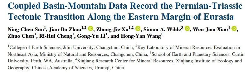 Sun, N.‐C., Zhou, J.‐B., Xu, Z.‐J., Wilde,S. A., Xiao, W.‐J., Chen, Z., et al. (2026).Coupled basin‐mountain data record the Permian‐Triassic tectonic transition along the eastern margin of Eurasia. Journal of Geophysical Research: Solid Earth, 131, e2025JB031395. //doi.org/10.1029/2025JB031395
