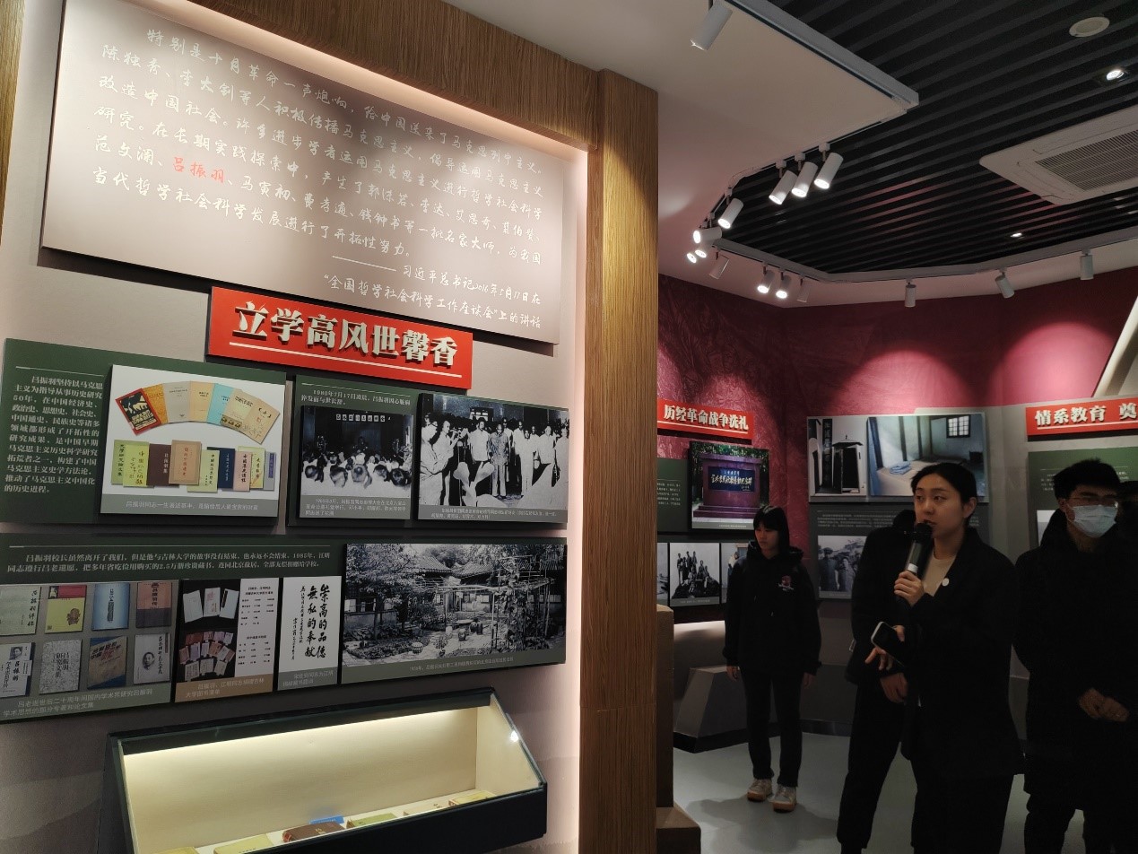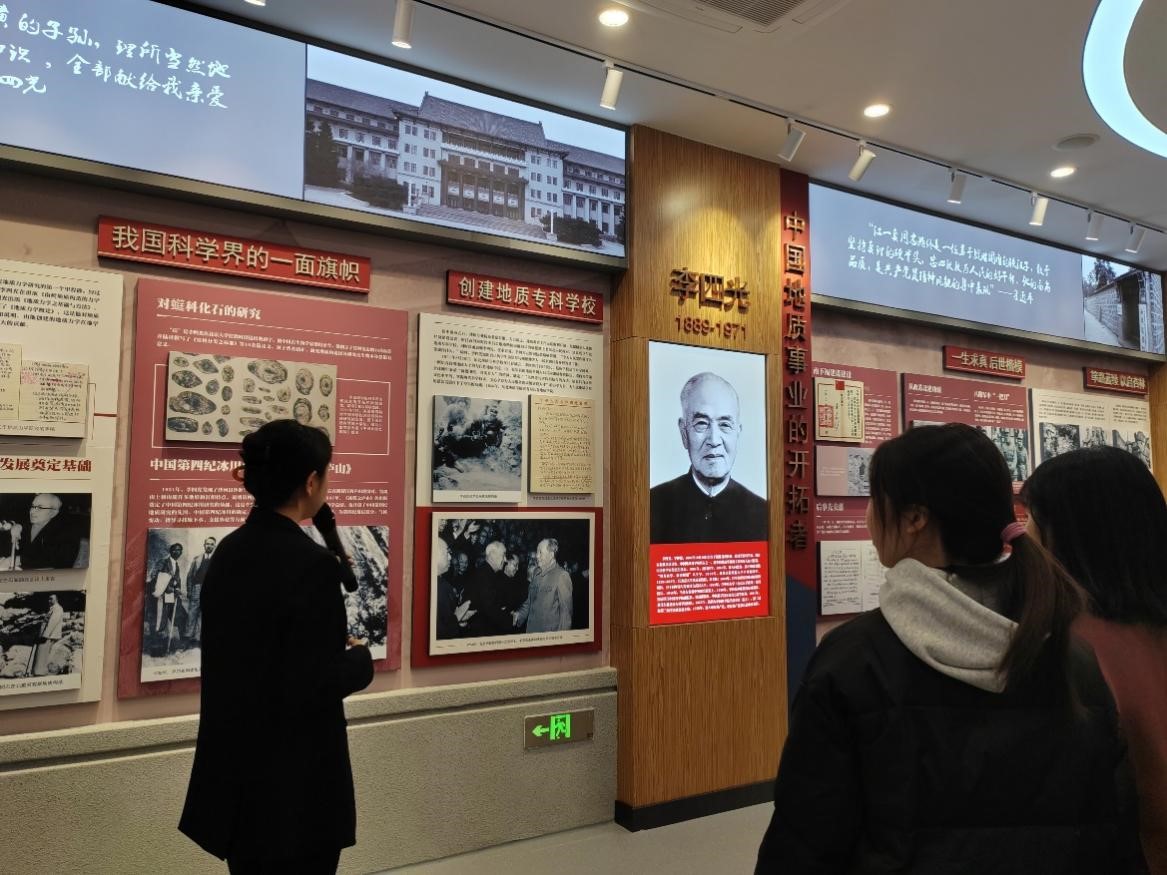 在讲解员的带领下,同学们走进“中国地质事业的开拓者”展区,了解到李四光院士创办了百合漫画