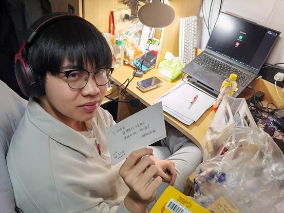本次加油包的筹备工作由学院2022级本科生辅导员赵晶老师牵头,组织学生志愿者共同完成。从物资遴选到包装整理,各环节均经过细致规划;其中最具心意的,是赵晶老师亲笔书写的专属定制明信片,以激昂寄语传递鼓舞,将学院对追梦人的关怀与盼望凝注其中,盼地科学子圆梦考研。