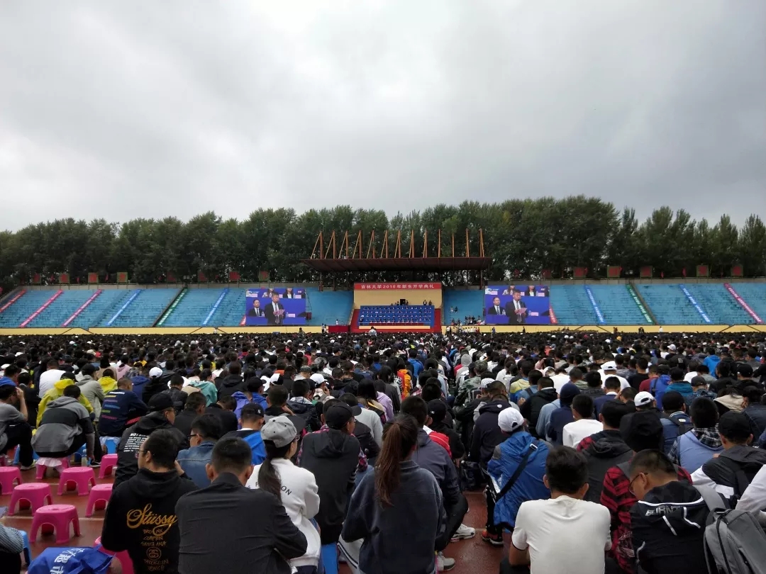 于中心校区体育场上隆重举行了2018年新生开学典礼。此次开学典礼到场的领导及来宾有党委副书记杨振斌教授,中国工程院院士、校长李元元教授,中国科学院院士于吉红教授,哲学社会科学资深教授张福贵教授,百合漫画