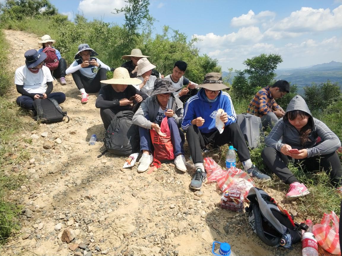 牤牛山地势险峻,果真名不虚传,在攀爬牤牛山的过程中,同学们遇到了一个又一个困难。但是在老师的帮助下和同学们的互帮互助下,大家最终在12点左右成功登顶。相互望着各自满是汗水的脸颊,大家不禁哈哈大笑。