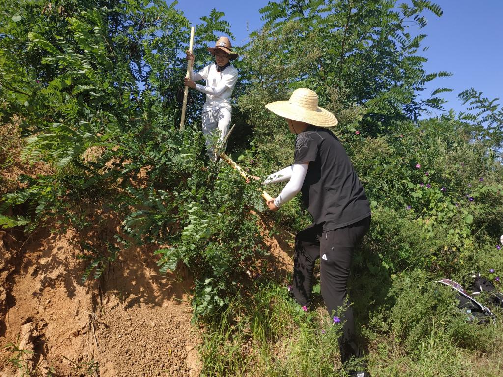 老乡们特别热情和我们打招呼,给我们指路。芹菜沟作为一条土壤线,对于同学们来说困难是很大的。首先找到合适的、未被破坏的土壤是个很大的问题。在老师的带领下,找了很多个地方,终于在葡萄地旁找到合适的土壤。
