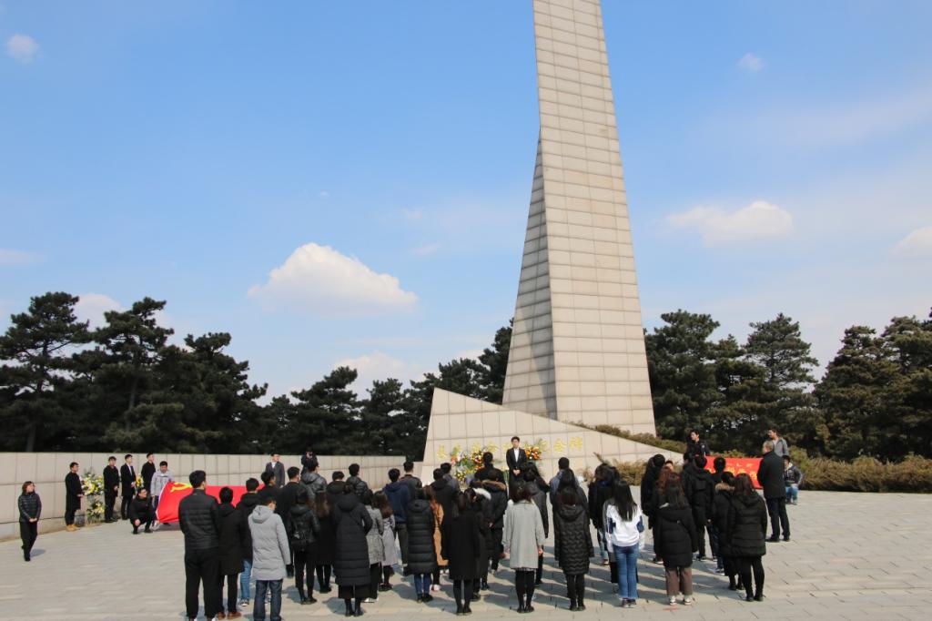 活动从早上8点开始,由朝阳校区西门乘车出发,经过近1个小时的车程到达长春市烈士陵园。长春烈士陵园,始建于1950年,位于吉林省长春市二道区英俊镇,建国初期,主要安葬了朝鲜战争中牺牲的百余名人民军烈士,后又陆续安葬了抗日战争、解放战争、抗美援朝、和平年代牺牲的烈士共计1266人。