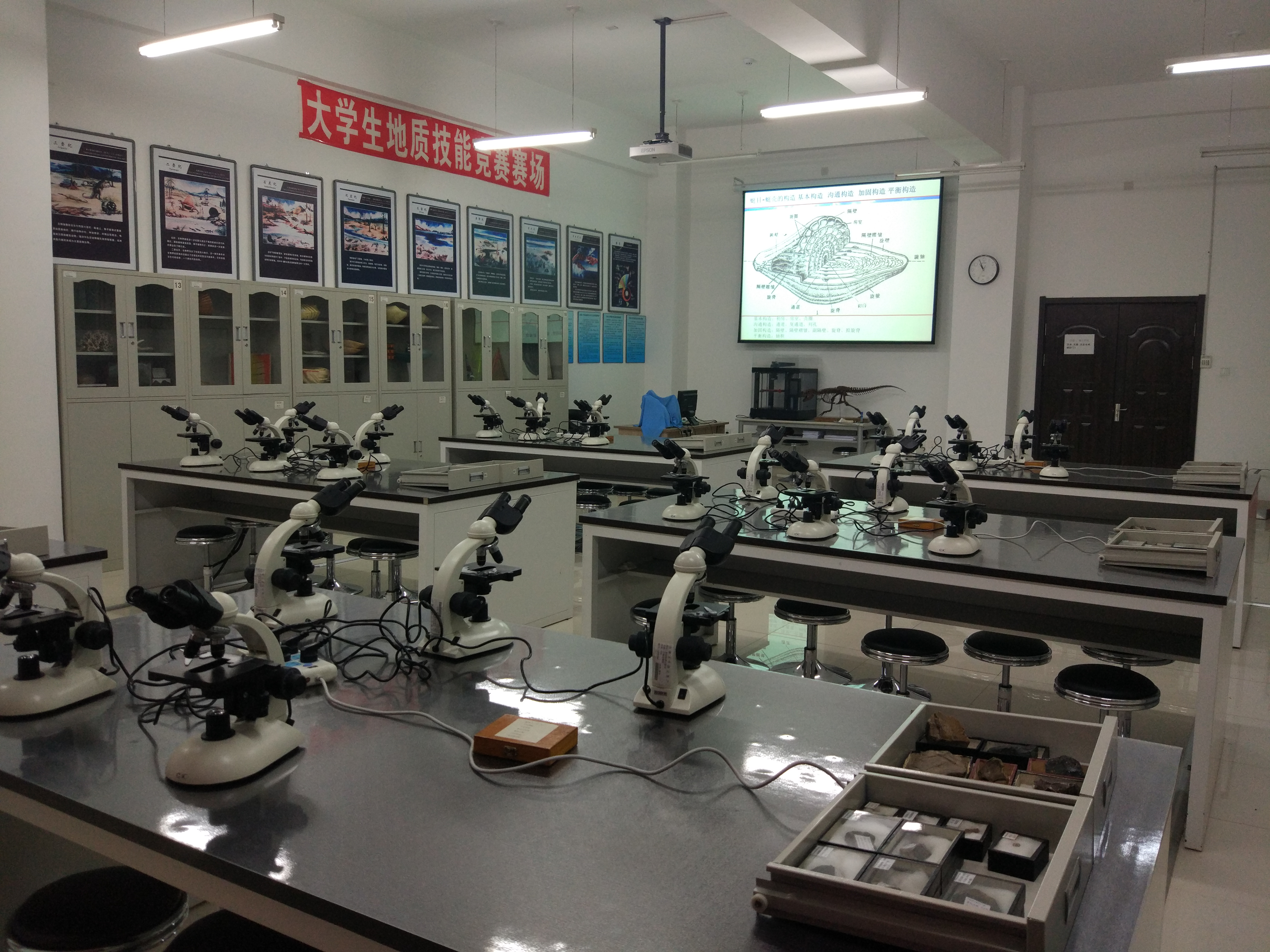 中心下设10个功能实验室,面积1800余平方米,藏有矿物、岩石、古生物、地层、构造和矿床等教学和科研标本50余万件,仪器设备(软件)300余台(套),设备总值1000余万元。