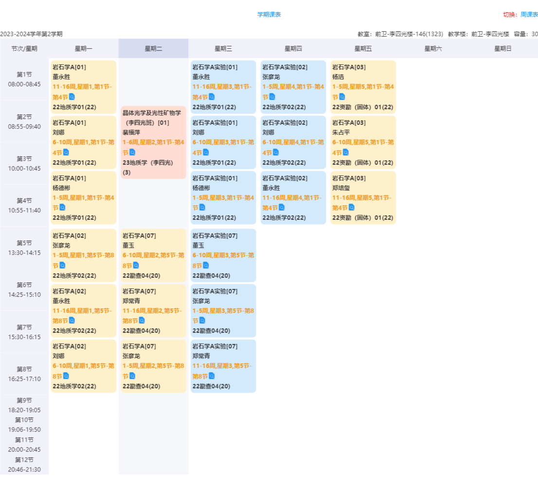 此外,132构造地质学实验室、144古生物学实验室相关构造地质学A,构造地质学B、地史学、古生物与地层学等实验课程随理论课进展排课。