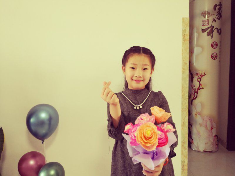 万忠梅老师女儿送妈妈亲手制作的纸花,我给妈妈比个心。