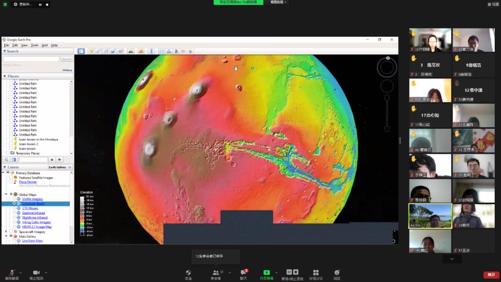 本次课程共有37名来自不同年级的本科生和研究生参与学习,并参加了作业评阅、课程项目汇报等考核。本次线上课程的成功举办,拓宽了我校学生的科学视野和前沿学术知识,培养学生实践应用能力,树立未来科研及职业发展的新目标,也为我校行星地质学方向的发展培育了后备力量。